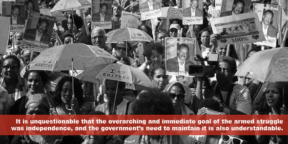 It is unquestionable that the overarching and immediate goal of the armed struggle was independence, and the government’s need to maintain it is also understandable. In fact, the need to protect Eritrean independence and territorial integrity had never been so greater than since the break of the 1998-2000 border war- an alleged consequence of territorial fine tuning left undone upon independence from Ethiopia.