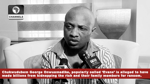 The first illustration here is the notorious billionaire head of a kidnapping gang in Lagos arrested by Nigerian security forces on 10 June 2017. Chukwudubem George Onwuamadike, popularly called ‘Evans’ is alleged to have made billions from kidnapping the rich and their family members for ransom. He is currently in police custody and available information revealed that he habitually demanded millions in both local and foreign currencies from his victims before releasing them.