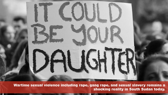 Wartime sexual violence including rape, gang rape, and sexual slavery remains a shocking reality in South Sudan today. The cultural perception of women as the property of men has led to a situation where warring factions employ rape of women as a tool of war to emasculate and demean the men in the opposing warring faction. Thus, rape is used as a means of showing these men that they are incapable of protecting their women. Women who survive rape face threats and experience trauma and are usually stigmatised by their own communities. As a result, many women are very reluctant to report rape. These are exacerbated by the absence of appropriate support services particularly health centres, counseling programmes, and the lack of accountability through the prosecution of offenders.