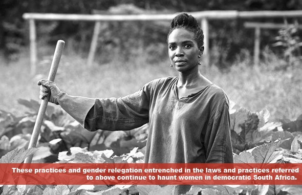Despite the transformative rhetoric enshrined in the 1996 Constitution, women, particularly black women, have not benefited from attempts at land reform, including housing and access to property. South Africa’s Constitution provides for the existence of a dual system of statutory law and ‘indigenous customary law.’ This body of customs and practices observed among the indigenous African people of South Africa pre-dates colonialism and apartheid. Traditionally, women have been denied rights to property under customary law in South Africa. Under customary law, a woman was generally regarded as a minor under the guardianship of her father, husband or brother, incapable of owning or acquiring property.