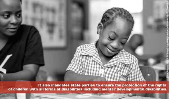 The CRPD provides that children with disabilities must enjoy their full rights like other children and be allowed to express their views and opinions without any form of discrimination. It also mandates state parties to ensure the protection of the rights of children with all forms of disabilities including mental/ developmental disabilities.