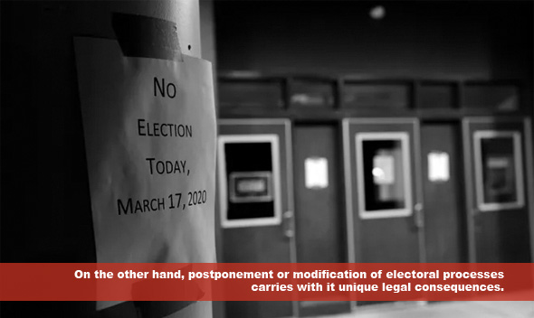 On the other hand, postponement or modification of electoral processes carries with it unique legal consequences. There is a real possibility that alterations to the election process or calendar may result in a constitutional crisis with governments remaining in power past their due date. Overcoming this challenge is dependent on the constitutional and legislative frameworks of the different jurisdictions including provisions on strict timelines for election procedures, guidelines on modification of election deadlines, frameworks for continuity of leadership in the event of an emergency, and powers conferred on the Election Management Body (EMB) to make timely and relevant regulations. Therefore, before a government decides on whether to modify or postpone an election, there should be a wide consultative process with political and civil actors, legal experts, and health professionals.