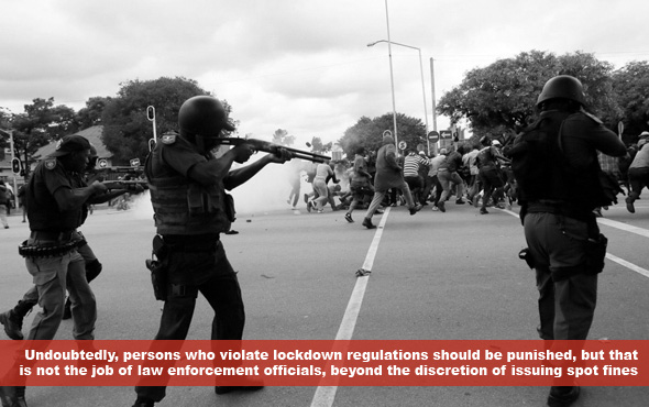 Undoubtedly, persons who violate lockdown regulations should be punished, but that is not the job of law enforcement officials, beyond the discretion of issuing spot fines (which themselves may be challenged in court). Law enforcement officials have been deployed to maintain peace and order and arrest persons who engage in prohibited activities. While law enforcement officials are allowed to use force in the performance of their duties, they must comply with the national and international standards of necessity and proportionality in the use of force. Breaching the law does not necessitate arbitrary force in return from law enforcement officials. There is the need to strike a balance between protecting human rights and the public health interest that the restriction regulations seek to protect.