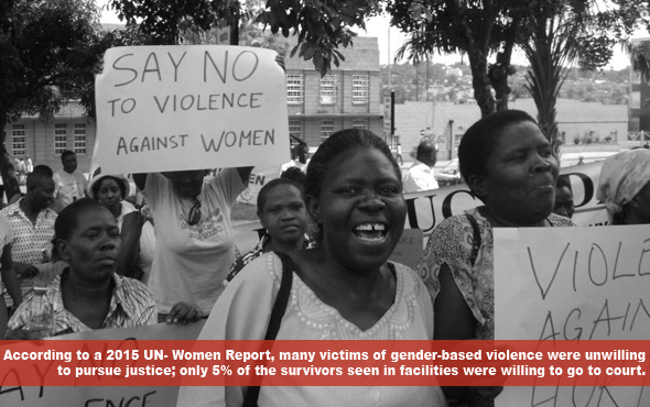 According to a 2015 UN- Women Report, many victims of gender-based violence were unwilling to pursue justice; only 5% of the survivors seen in facilities were willing to go to court. Poverty, illiteracy, insensitivity of law enforcers, and several other barriers greatly deter women from reporting incidences of violence occurring in their communities. The underlying gender inequality in distribution of socio-economic opportunities, also greatly impedes the realisation of human rights for survivors of gender-based violence, majority of whom are women.
