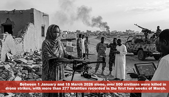 Since the outbreak of armed conflict between the Sudanese Armed Forces (SAF) and the Rapid Support Forces (RSF) in April 2023, UAVs have emerged as a defining feature of the battlefield. Between 1 January and 15 March 2026 alone, over 500 civilians were killed in drone strikes, with more than 277 fatalities recorded in the first two weeks of March. Just a few days ago, a drone strike tragically hit the town of Kutum in North Darfur, killing 30 people at a wedding ceremony. Earlier, on March 20, 2025, during the first day of Eid al-Fitr, coordinated air and drone strikes targeted El Daein Teaching Hospital in East Darfur, resulting in at least 64 deaths, including 13 children, and causing the hospital’s emergency, maternity, and pediatric units to become entirely non-operational.